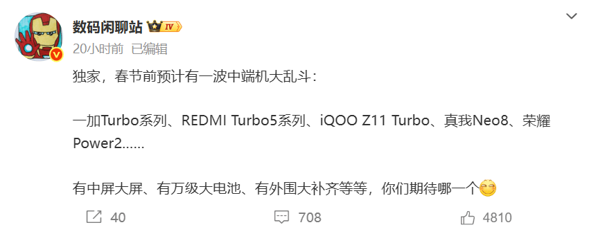 bw必威西汉姆联官网bw必威西汉姆联官网bw必威西汉姆联官网bw必威西汉姆联官网bw必威西汉姆联官网中端手机市场细分的很精准,有区分中低端、中端、中高端定位,配置上还是有差距的,只不过各家都很卷,动不动就下放旗舰配置,导致中端市场变得混乱。 目前来看,很多中端手机都标配金属中框、超声波指纹、IP68级别防尘防水,甚至还能配备2k旗舰屏幕、高规格扬声器和马达等,除了拍照不及旗舰手机,其他都可以比肩旗舰了。 今年的中端市场发布了很多新机,但行业还没有正式开卷,12月还不用急着换新机,建议大家至少要等到月底,到时候荣耀WIN系列手机发布,中端市场大战就要拉开序幕了。 荣耀WIN系列就是之前我们所说的荣耀GT 2系列,之所以改为这个名字,相信大家都清楚,这就是冲着碾压全场来的,荣耀官方公布了发布时间,会在本月26日举行发布会,外观图也已经放出来了,宣传口号是超神性能双旗舰。 荣耀WIN系列会带来两款手机,一款搭载骁龙8至尊版处理器、一款搭载第五代骁龙8至尊版处理器,和其他子系品牌的定位很相似,分别定位中高端和旗舰,目前比较清晰的配置是全系有100w有线快充、主动散热风扇、金属中框等,采用横向大矩阵DECO,而且这次还能给到巨容量电池、IP69级别防尘防水,做到既要、又要、还要! 据网上爆料,荣耀WIN系列的电池容量最少有9000mAh,甚至可能会达到9900mAh,续航方面能够碾压全场了,而且全系还会有3D超声波指纹解锁,性能方面加持主动散热风扇和幻影引擎等,优化能力应该会更强一些,影像方面标准版采用5000万像素双摄,高配版采用5000万像素三摄,荣耀这次的手机值得期待期待。 不过荣耀本系列新机定位更高些,价格估计会上涨一些,预计起售价会涨到两千五六,高配版则接近四千元,如果想买更便宜的中端高性能手机,可以等12月后,明年就有大量中端手机上市。 据博主数码闲聊站爆料,春节前就有一波中端手机大乱斗,预计会在1月底全面上市,是定位中端或中低端的机型,一加、红米、iqoo、真我都有相应的手机。 这些机型大部分都主打高性能,有搭载骁龙8s Gen 4处理器、天玑8500处理器的,还有搭载天玑9500e处理器、骁龙8Gen 5处理器的,性能跑分都是两百多万起步,高的有三百多万,如iqoo z11 Turbo和线处理器,性能跑分就有三百多万,这已经可以媲美骁龙8至尊版手机了,但定价预计会在两千元左右,更低几百元。 一加Turbo采用骁龙8s Gen 4处理器、红米Turbo 5采用天玑8500处理器,定位更低一些,但跑分也有两百多万,足够满足日常运行或者游戏需求,关键是价格会更低,两款手机的定价应该都会在两千元以内,还会下放金属中框、IP68级别防尘防水等旗舰配置,并且给到大容量电池,续航方面也是不错的。 这些中端手机是卷电池的主力军,电池又会提高不少,如一加Turbo、iqoo z11 Turbo、线这些手机,电池容量都会在8开头,红米Turbo 5 pro甚至会有9开头,而荣耀power 2则专注于电池,会给到10080mAh巨容量电池,能够打破行业天花板,搭载的还是天玑8500处理器,优势非常明显,所以12月想买手机建议别急,等到明年会更香。返回搜狐,查看更多
