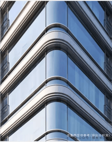 建筑层间铝板线条处,选取比一般工艺成本更贵,成品率更低的【弯弧铝板】演绎,此外,为呈现一座历经时间洗礼的作品,楼体铝板采用了造价比普通铝板高、防腐性好、附着力强、耐气候性强可历久弥新的辊涂工艺铝板,因为也是弧面,每一次都需单独整体开模。