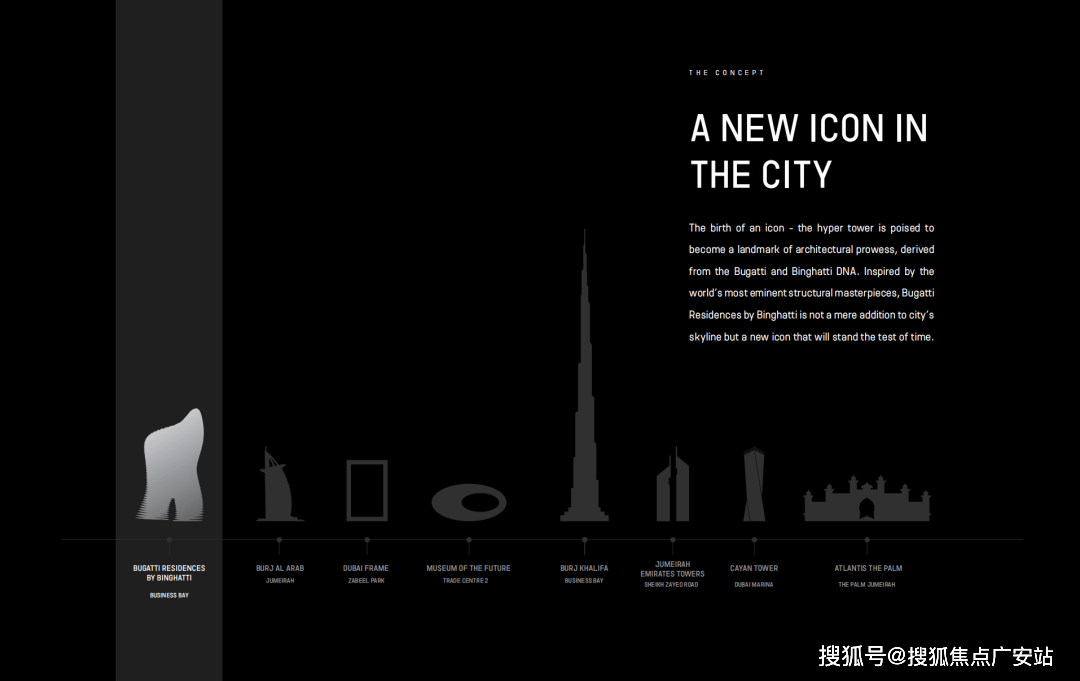 Bugatti Residences塔楼名贵的DNA与精工细作的建筑品质为迪拜这座厚积薄发的闪耀星城注入了全新的能量,它不仅为人们带来了更加具有冲击的景观视觉体验,也为每个居住于此的成功人士点亮了身份的名牌,一个全新的标志性建筑就此诞生。