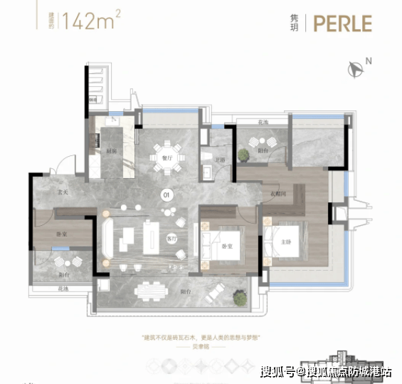 176㎡四房两厅两卫主打全生命周期设计,均价约11-12万/㎡,适合多孩家庭或多代同堂的家庭,最多可打造3个套房空间,灵活性拉满。户型配备独立专享电梯厅与转角玄关,独立电梯厅相当于业主的“私人空间”,可以摆放鞋柜、杂物,实用性很强;转角玄关设计,既能保证室内隐私,又能增加收纳空间,一举两得。