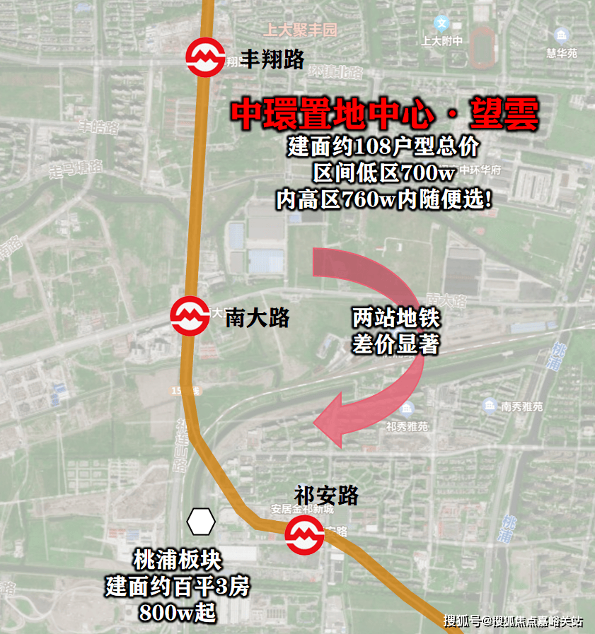 相比地铁2站后的普陀祁安路站,建面约百平3房门槛就是800w级,望雲TOD地段更好。