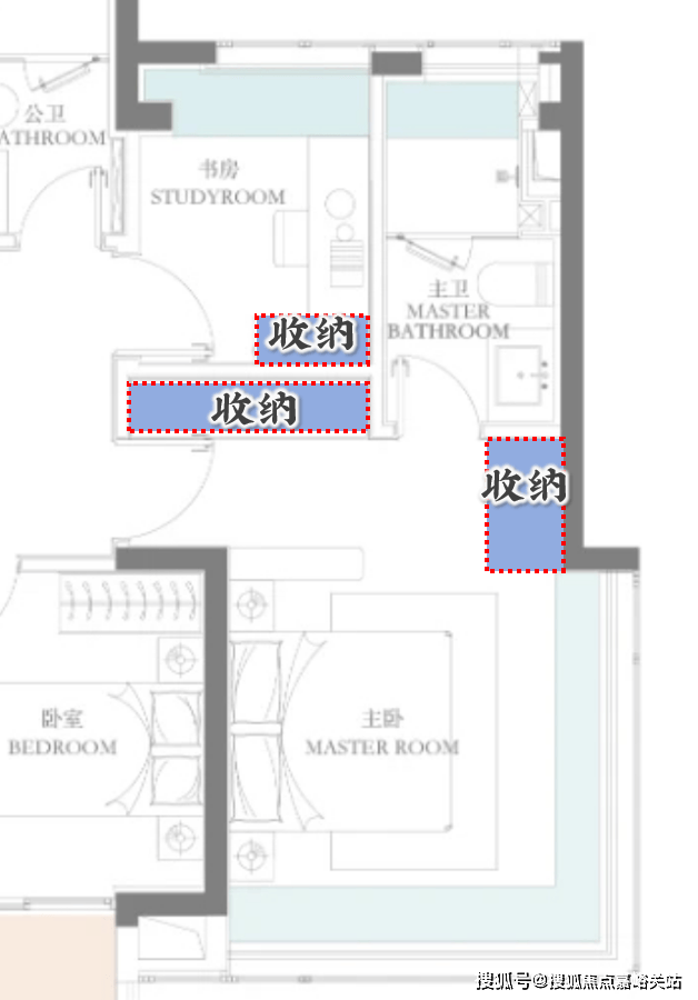 主卧收纳,相比其他主卧套房设计有衣柜+卫生间之外,又多做了一个收纳空间。